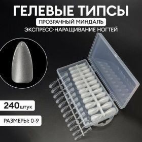 НАЙТИ ВЫГОДНЕЕ - Гелевые типсы для экспресс наращивания прозрачный миндаль (размеры 0-9) 240 шт. №7074