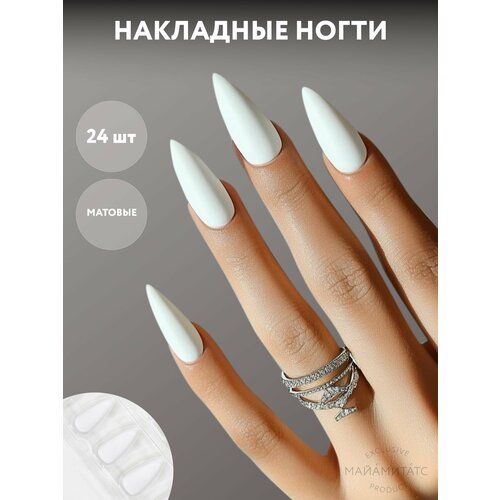 НАЙТИ ВЫГОДНЕЕ - MIAMITATS Накладные ногти белые VELOUR (Stiletto) Polar