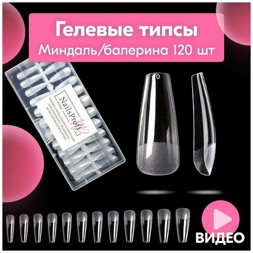 НАЙТИ ВЫГОДНЕЕ - NailsProfi, Гелевые типсы для наращивания ногтей, матовые формы для наращивания, Балерина/Миндаль - 120 штук.