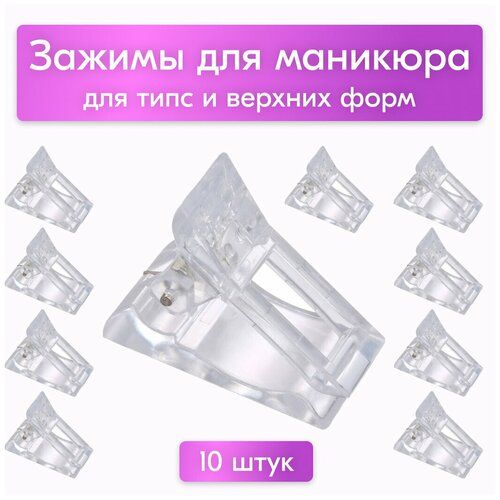 НАЙТИ ВЫГОДНЕЕ - NailsProfi, Зажим для маникюра и наращивания ногтей, клипсы для типс и верхних форм, Прозрачные, 10 штук