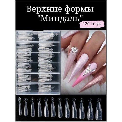 Верхние формы "Миндаль" для наращивания и ремонта ногтей представляют собой многоразовые верхние формы, предназначенные для моделирования миндалевидных ногтей. В упаковке вы найдете 12 размеров по 10 штук, всего 120 форм.
