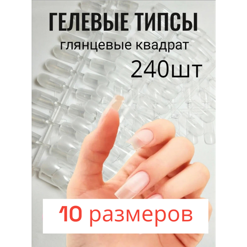 НАЙТИ ВЫГОДНЕЕ - Гелевые типсы Квадрат 240 штук для наращивания ногтей, глянцевые с лункой