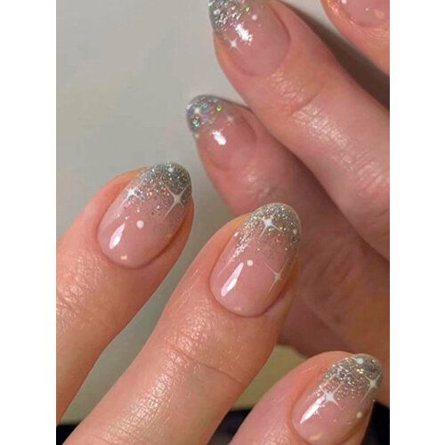 НАЙТИ ВЫГОДНЕЕ - Накладные ногти со звездами блестящиее