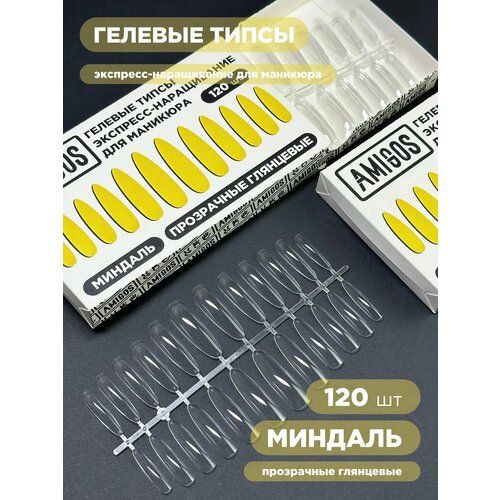 Гелевые типсы AMIGOS Прозрачные глянцевые миндаль длинные, 120 шт. Поверхность типс глянцевая. Созданы из мягкого и гибкого геля. Имеют высокую эластичность в зоне натурального ногтя и чуть более твердый свободный край. Обладают стандартной аркой, но благодаря гибкости, очень эргономично ложатся на ногтевую пластину. Экономят время работы мастера. Типса легко подгоняется под арку ногтя. Фиксируется на каучуковую базу.