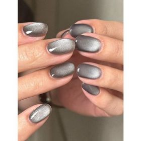 Дизайн ногтей выполнен в стиле "кошачий глаз", что придает им особый шик и элегантность. Серебристый цвет ногтей металлик подойдет как для повседневного использования, так и для особых случаев.