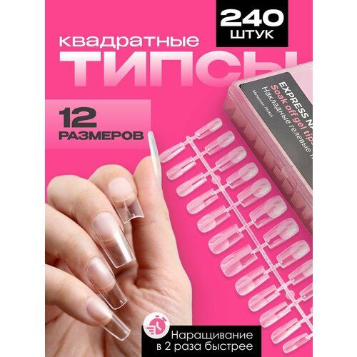 НАЙТИ ВЫГОДНЕЕ - Гелевые типсы для экспресс наращивания, прозрачные, Квадрат, размеры 0-11, 240 шт