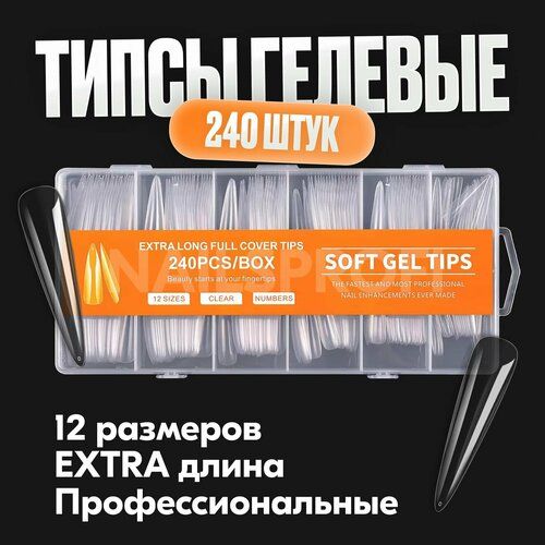 НАЙТИ ВЫГОДНЕЕ - Гелевые типсы SOFT для наращивания ногтей, прозрачные формы Миндаль - 240 штук