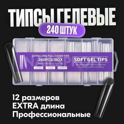 НАЙТИ ВЫГОДНЕЕ - Гелевые типсы SOFT для наращивания ногтей, прозрачные формы Арочный Квадрат - 240 штук