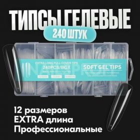 НАЙТИ ВЫГОДНЕЕ - Гелевые типсы SOFT для наращивания ногтей, прозрачные формы овал - 240 штук