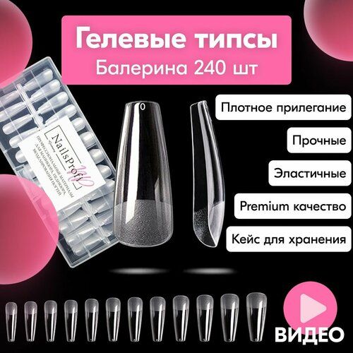 НАЙТИ ВЫГОДНЕЕ - Гелевые типсы для наращивания ногтей, матовые формы Балерина - 240 штук