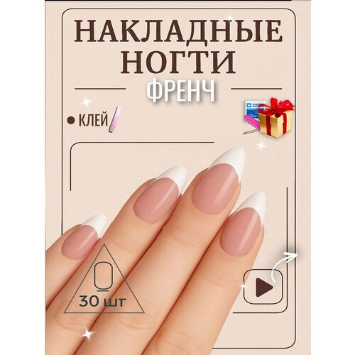 НАЙТИ ВЫГОДНЕЕ - Накладные ногти Френч с клеем, 30 штук
