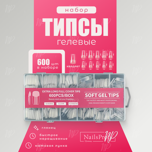 НАЙТИ ВЫГОДНЕЕ - Гелевые типсы короткие для наращивания ногтей, глянцевые формы Квадрат 600 штук