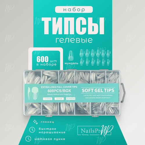 НАЙТИ ВЫГОДНЕЕ - Гелевые типсы короткие для наращивания ногтей, глянцевые формы Миндаль 600 штук