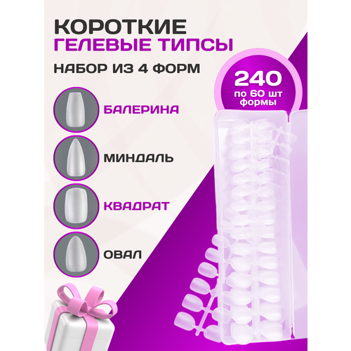 НАЙТИ ВЫГОДНЕЕ - Гелевые типсы для наращивания ногтей матовые короткие микс: миндаль, квадрат, овал, балерина