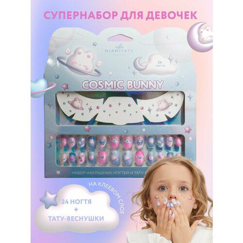 НАЙТИ ВЫГОДНЕЕ - MIAMITATS KIDS Подарочный набор для девочки Cosmic Bunny, накладные ногти детские и тату-веснушки ( зайки )