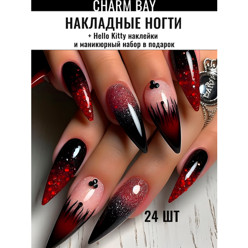 НАЙТИ ВЫГОДНЕЕ - Накладные ногти с дизайном острые с клеем 24 шт