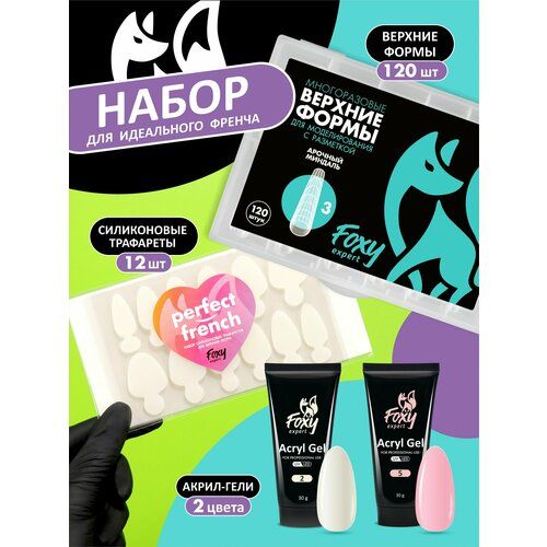 НАЙТИ ВЫГОДНЕЕ - Набор Foxy Expert Арочный Миндаль, формы для наращивания, акригель, голубой