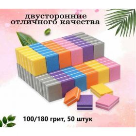 Набор мини-бафов для маникюра - 50 штук. Баф используется как маникюрная пилка, представлен объемным квадратом, который может быть применена как для обработки натуральных, так и искусственных ногтей.