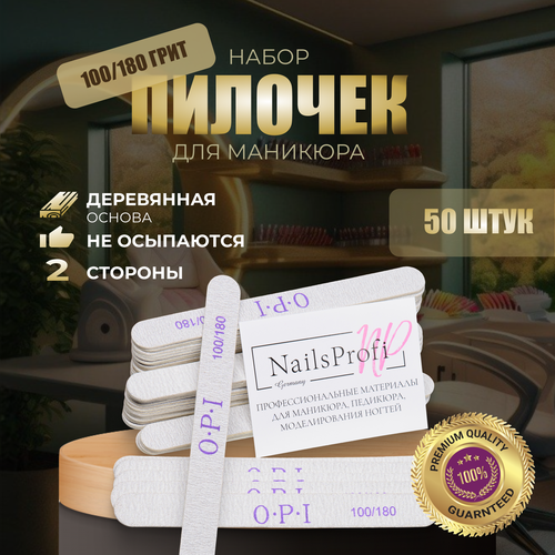 НАЙТИ ВЫГОДНЕЕ - NailsProfi, Пилки для ногтей OPI прямые, 100/180, 50 шт, набор, пилки, пилочки для маникюра