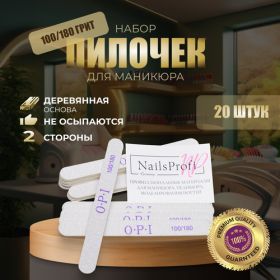 НАЙТИ ВЫГОДНЕЕ - NailsProfi, Пилки для ногтей OPI прямые, 100/180, 20 шт, набор, пилки, пилочки для маникюра