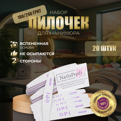 НАЙТИ ВЫГОДНЕЕ - NailsProfi, Пилки для ногтей OPI овал лодочка полумесяц 180/240, 20 шт, набор, пилки, пилочки для маникюра
