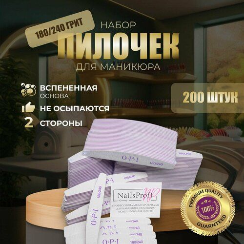 НАЙТИ ВЫГОДНЕЕ - Пилки для ногтей OPI, овал лодочка полумесяц, 180/240, 200 шт, набор, пилочки для маникюра