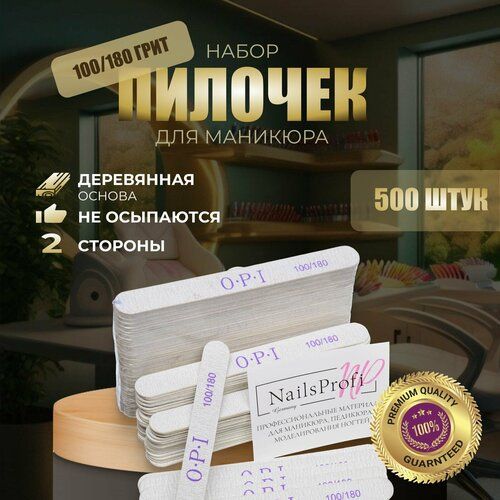 НАЙТИ ВЫГОДНЕЕ - Пилки для ногтей OPI прямые, 100/180, 500 шт, набор, пилочки для маникюра