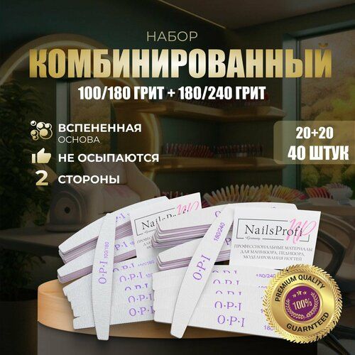 НАЙТИ ВЫГОДНЕЕ - Пилки для ногтей OPI овал 100/180 и 180/240, 40 шт, набор, лодочка полумесяц, пилки, пилочки для маникюра