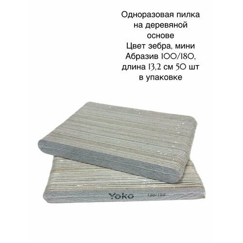 Пилки одноразовые Yoko зебра имеют светло-серый цвет и степень абразивности 100/180 грит. В наборе 50 штук, что обеспечивает длительный срок использования и экономию средств.