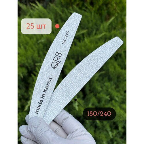 НАЙТИ ВЫГОДНЕЕ - Набор пилочек QRB для маникюра пилки для ногтей лодка луна 180\240 гр 25 шт на деревянной основе. Корея. Длина 18 см.