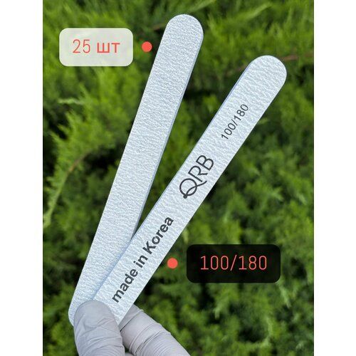 НАЙТИ ВЫГОДНЕЕ - Набор пилочек QRB для маникюра пилки для ногтей прямая 100\180 гр 25 шт на деревянной основе. Корея. Длина 18 см.