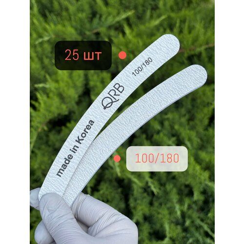 НАЙТИ ВЫГОДНЕЕ - Набор пилочек QRB для маникюра пилки для ногтей бумеранг 100\180 гр 25 шт на деревянной основе. Корея. Длина 18 см.