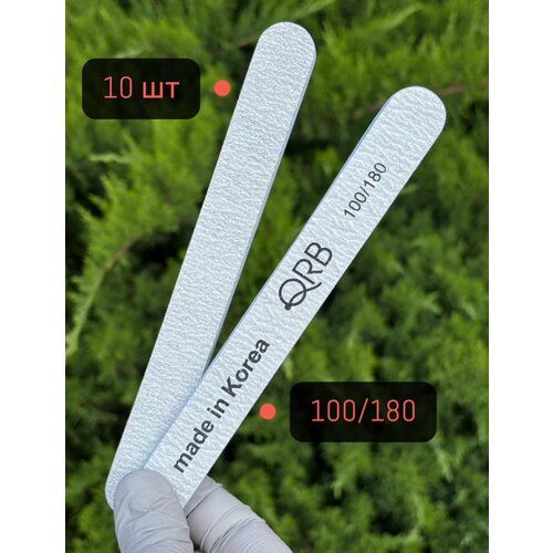 НАЙТИ ВЫГОДНЕЕ - Набор пилочек QRB для маникюра пилки для ногтей прямая 100\180 гр 10 шт на деревянной основе. Корея. Длина 18 см.