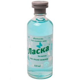 Жидкость для снятия "Ласка" без ацетона, 100 мл. Мягко и эффективно удаляет любой лак, не повреждая структуру ногтей. Специальная мягкая безацетоновая формула жидкости предотвращает обезжиривание ногтевой пластины, отлично подходит для тонких и ломких ногтей. Состав: Этилацетат, органические растворители, вода, парфюмерная композиция. Стеклянный флакон.
