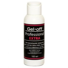 Артикул: 0681-604. Размеры: 0.1 см., Объем: 100 мл., Вес: 100 гр., Вид: Жидкость для снятия лака, Размер упаковки: 4.5 x 10 x 4.5 см., Температурное ограничение: Нет, Набор: Нет. Экстрасильное средство для снятия гель - лака, искусственных ногтей Gel-off Professional обладает усиленной формулой. Бережно размягчает покрытие за 8 минут. Не деформирует ногтевую пластину. Не вызывает жжения. Удаляет все искусственные покрытия: гель-лак, типсы, акрил, клей, гель, лак. Экономичный расход.Способ применения: смочите ватный диск жидкостью, оберните его вокруг ногтя и всерху закройте полоской фольги. Через 8-10 минут удалите покрытие апельсиновой палочкой.Состав: ACETONE, PEG-40, HYDROGENATED CASTOR OIL, GLYCERIN, ALFA TOCOPHEROLA ACETAT, METHYL ETHYL KETONE, PARFUM, CL 45410, CL 42090.
