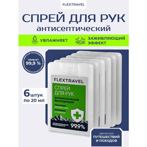 НАЙТИ ВЫГОДНЕЕ - Спрей антисептик для рук Flextravel, без спирта, объем 20 мл, 6 шт в комплекте