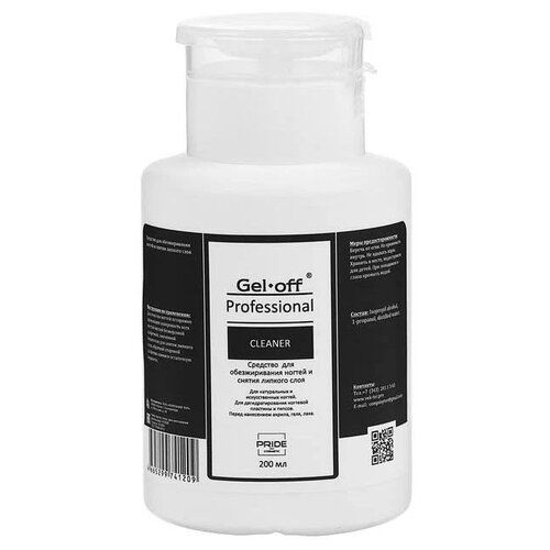 Средство для обезжиривания ногтей и снятия липкого слоя Gel-off Cleaner Professional, помпа, 200 мл