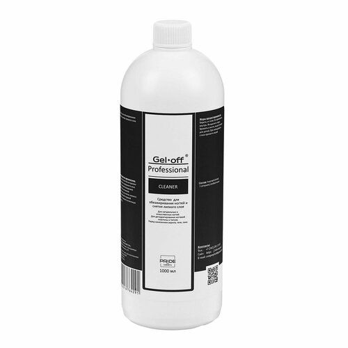 Обезжириватель для ногтей Gel-Off Cleaner Professional 1000ml - это профессиональное средство, предназначенное для обезжиривания, дегидратации и снятия липкого слоя с натуральных и искусственных ногтей.