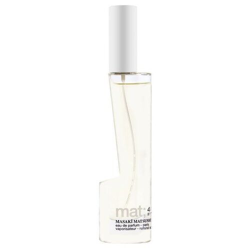 Женская цветочно-зелёная композиция с фруктовыми акцентами Mat; японской парфюмерной марки Masaki Matsushima выпущена в 2005 году и является одним из культовых и популярных ароматов бренда. Лёгкая, прозрачная и свежая композиция основана на сочетании нот бамбука, лотоса, чая, арбуза и мяты.Главный аккорд подчёркивают более тонкие древесно-акватические и цветочно-фруктовые грани. Это универсальный аромат для весенне-летнего сезона. Он подходит как для работы в офисе, так и для прогулок в выходной день.Парфюм Mat раскрывается свежестью влажных нот чая, бамбука и арбуза с лёгкой пряной горечью ягод можжевельника. Сердечный аккорд смягчает свежесть начальных акцентов цветочно-фруктовыми гранями жасмина, лотоса, розы, мяты и чёрной смородины. Завершает аромат нежный запах мускуса.