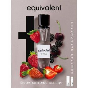 Вся композиция "EQUIVALENT" P028 выстроена вокруг интересной идеи – собрать в своем букете весь спектр ягодных оттенков и перевязать их лентами фиалки и жасмина, придавая созвучию сладости легкость и осязаемость. В одном букете встречается сахарная малина, с ней переплетается пряная вишня, объединяясь в трезвучие с глубоким и волнующим привкусом черники, окаемкой идет родной аромат клубники, добавляющий праздничность. Облаком утонченности над ягодным торжеством пестреет ежевика – нетрадиционная, необычная, но невероятно подходящая в гамму сладости и сахарности.