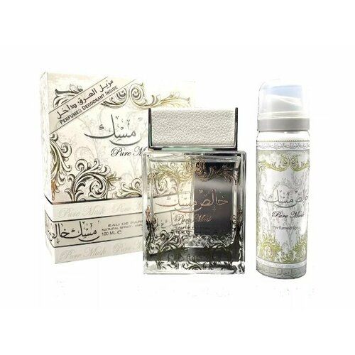 Арабская парфюмерная вода + дезодорант Lattafa Pure Musk представляет собой уникальное сочетание аромата и дезодоранта.
