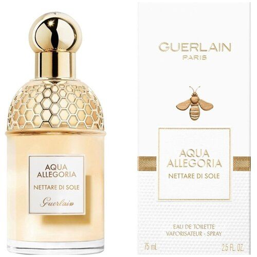 Guerlain Aqua Allegoria Nettare Di Sole - одна из двух ярких парфюмерных новинок, представленных французским модным брендом Guerlain в рамках своей культовой коллекции Aqua Allegoria. Внутри традиционного “пчелиного” флакончика, увенчанного позолоченной крышечкой, переливается солнечным светом ослепительный янтарный эликсир с выразительным цветочным характером. Аромат удивительно точно передает тепло ярких солнечных дней и сладость первого меда, собранного трудолюбивыми пчелами на бескрайних полях цветущей Франции. Композиция стала очередным шедевром в авторской коллекции двух популярных и успешных парфюмеров современности - Thierry Wasser и Delphine Jelk, которые уже не впервые сотрудничают с домом высокой моды. На этот раз, их талант воплотился в нежном цветочном сиянии парфюмированной воды Guerlain Aqua Allegoria Nettare Di Sole, до краев наполненной природной женственностью и непреодолимым природным соблазном. В букете этого непревзойденного парфюма собраны самые эффектные и ароматные цветы: роскошная белая магнолия, роза и чувственный жасмин самбак, чьи лепестки светятся искрами в лучах пьянящего летнего солнца. Аромат получился густым и тягучим, в меру сладким и не приторным, как первый мед, собранный из пыльцы разнотравья. Цитрусовое вступление из аккордов калабрийского бергамота и флердоранжа черпает свою свежесть из потоков свежей ключевой воды. Соблазнительный медовый шлейф идеально смотрится в любую погоду и особенно уместен в прохладные летние вечера.\n