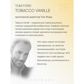 Духи по мотивам Tom Ford "Tobacco Vanille" унисексовый, уникальный и дорогой аромат. На женщинах раскрывается более ванильно-шоколадным звучанием, а на мужчинах выделяются листья табака и цветы. Жемчужина среди всех ароматов Тома Форда, которая не оставит равнодушным ни окружающих, ни носителей аромата. Рекомендация по нанесению роликовых духов: точечно на запястья, область за ушами, под колени и на локтевые сгибы. Компактный размер флакона удобно брать с собой не только на работу, но и в путешествие, поездки, командировки или поход. Масляные роликовые духи от AROMAKO, представлены в двух форматах 3 мл и 10 мл. Для ознакомления со всем ассортиментом ароматов переходите по названию магазина в полный каталог.