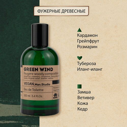 НАЙТИ ВЫГОДНЕЕ - Туалетная вода мужская Vegan Man Studio Green Wind 100мл древесный фужерный аромат