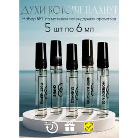 Набор мини-духов №1 включает в себя 5 флаконов объёмом 6 мл каждый. В них представлены парфюмерные композиции, вдохновлённые популярными селективными ароматами.