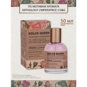 Парфюмерная вода женская Vegan Love Studio Dolce Queen 50 мл - необычайный и красочный аромат. Парфюм женский создан по мотивам L`Imperatrice 3 D&G (императрица 3), дополнен авторскими оригинальными нотами и украшен стильным дизайном флакона.