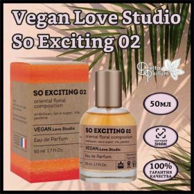 - Vegan Love Studio So Exciting 02 стал еще более свежим и притягательным, его аромат никогда не остается незамеченным, вызывая восхищение и тайное желание обладать им. Его полюбили как мужчины, так и женщины. Чувственный и утонченный, этот парфюм окутывает аурой спокойствия, расслабленности и пронзительной нежности. Чистый, ясный, воздушный аромат создаст ощущение легкости, влюбленности, волшебства и счастья. Ненавязчивость и легкость аромата дает возможность его использовать в любое время суток. Утром он будет свежим, сладостным и приятным, как весенняя прохлада, днем успокоит и подарит спокойствие, невозмутимость и миролюбивый настрой, а вечером подчеркнет сексуальность, чувственность и пламенную притягательность своей обладательницы. Окутывая невесомой дымкой, Vegan Love Studio So Exciting 02 приносит чувство возвышенности, веры в чудо, никого не оставляя равнодушным. В любой ситуации, при любой погоде, парфюм с волшебной молекулой дарит веру в себя и собственную красоту. Не влюбиться в завораживающую романтику Vegan Love Studio So Exciting 02 невозможно. Такой простой и понятный, но одновременно притягательный аромат вызывает чувство восторженности, и не только благодаря содержащемуся афродизиаку, но и за счет легкости, бодрости и свежести. Единожды почувствовав аромат этого парфюма, отказаться от него невозможно. Он притягивает и манит всегда. Группа ароматов: цветочные , древесные