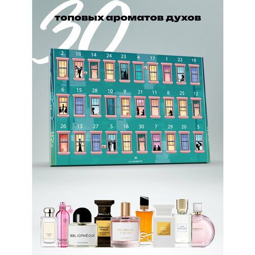 НАЙТИ ВЫГОДНЕЕ - Адвент календарь с парфюмом La Cachette/Адвент-календарь с духами 30 шт по 2 мл. зеленый