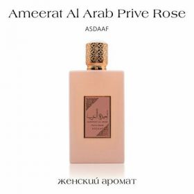 Lattafa Ameerat Al Arab Prive Rose — изящный, утонченный и трогательный женский цветочно-фруктовый аромат, окутанный волшебством сладких мускусных оттенков. Парфюм выпущен в 2022 году арабским парфюмерным брендом Lattafa. Прямоугольный флакон окрашен в матовый тон «пыльной розы» и украшен золотистым колпачком.