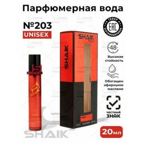 SHAIK - сертифицированная номерная парфюмерия. Ароматы SHAIK относятся к духам и обогащены эфирными маслами, благодаря чему имеют стойкость до 48 часов. SHAIK 203 - прекрасный унисекс-парфюм, способный телепортировать своего обладателя в благоухающий тропический лес. Начинает аромат раскрываться мощным аккордом из нот сочного персика, спелой малины, сладкой груши, экзотической маракуйи, терпким листом чёрной смородины, и едва уловимым песком. В сердце всего одна нота, но зато какая - нежнейший, манящий ландыш. Ну а шлейф не оставляет шансов остаться равнодушным к этому парфюму за счёт невероятного сочетания пряных ванили и мускуса, травянистого пачули, а также глубоких сандала и гелиотропа.